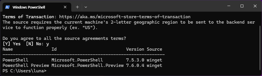 winget install --id Microsoft.PowerShell --source winget