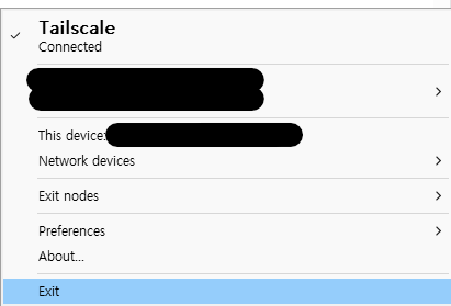 이렇게 로그인을 하고 나면, 시스템 트레이에서 Tailscale이 실행되고 있는지 확인할 수 있다.