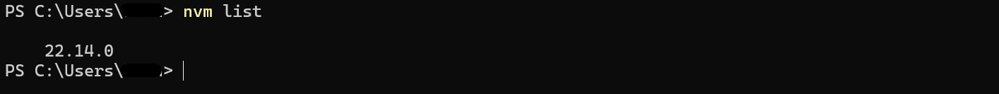 명령어를 이용하여 Node.js 설치가 완료되었다면, nvm list