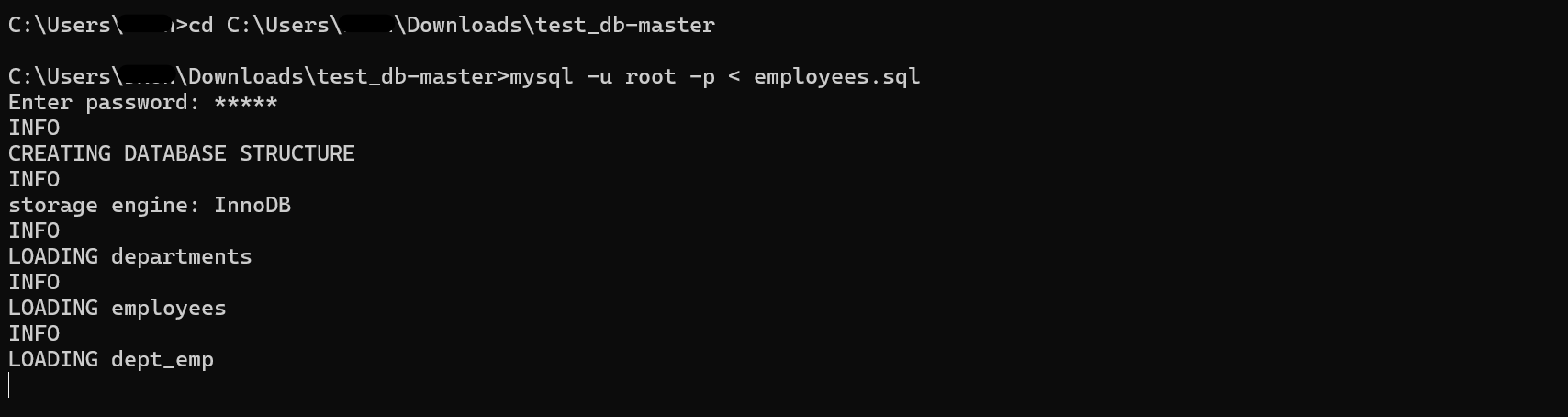 mysql -u root -p < employees.sql