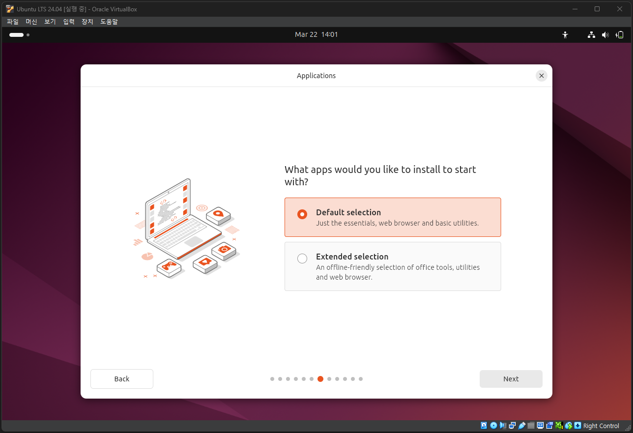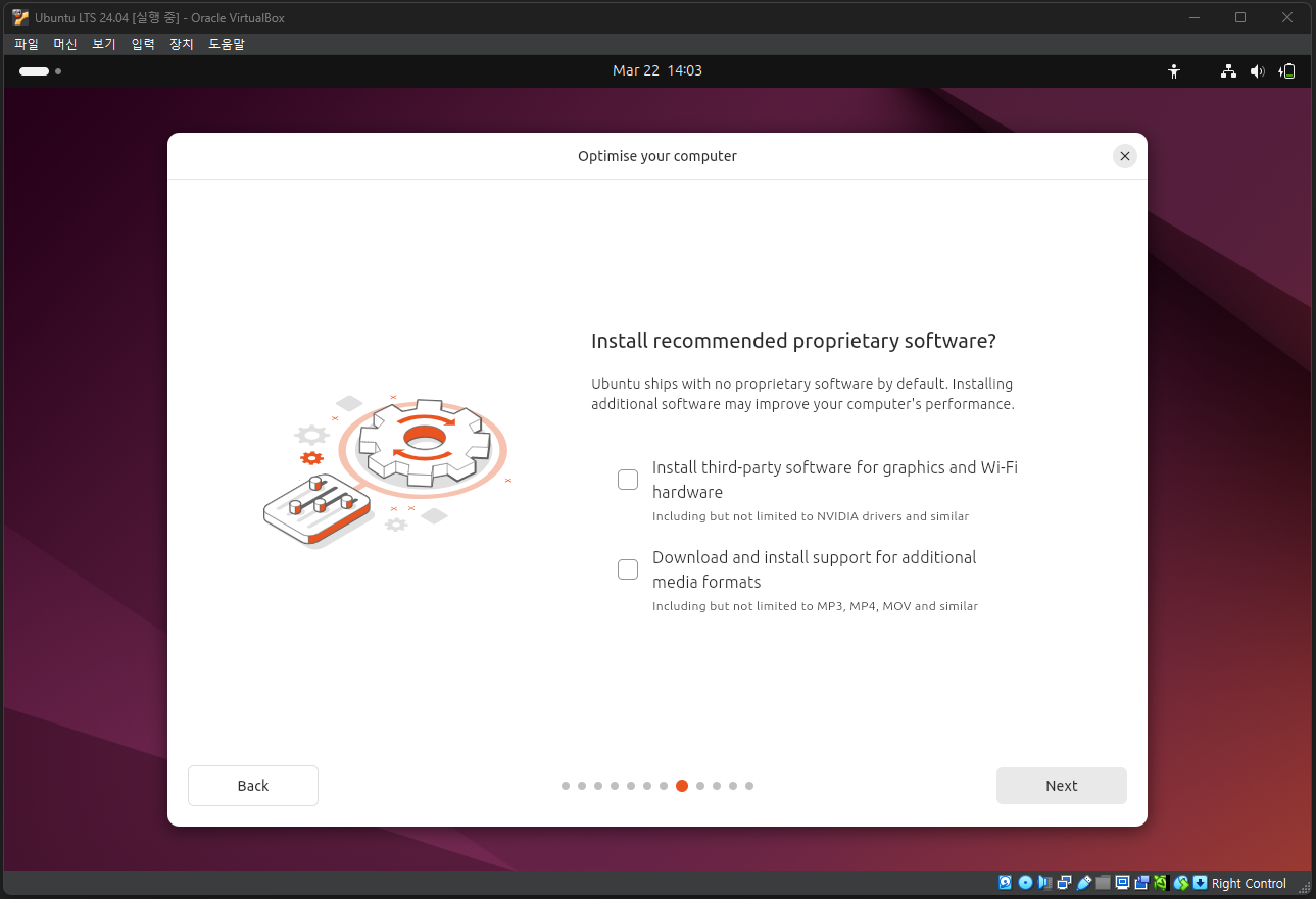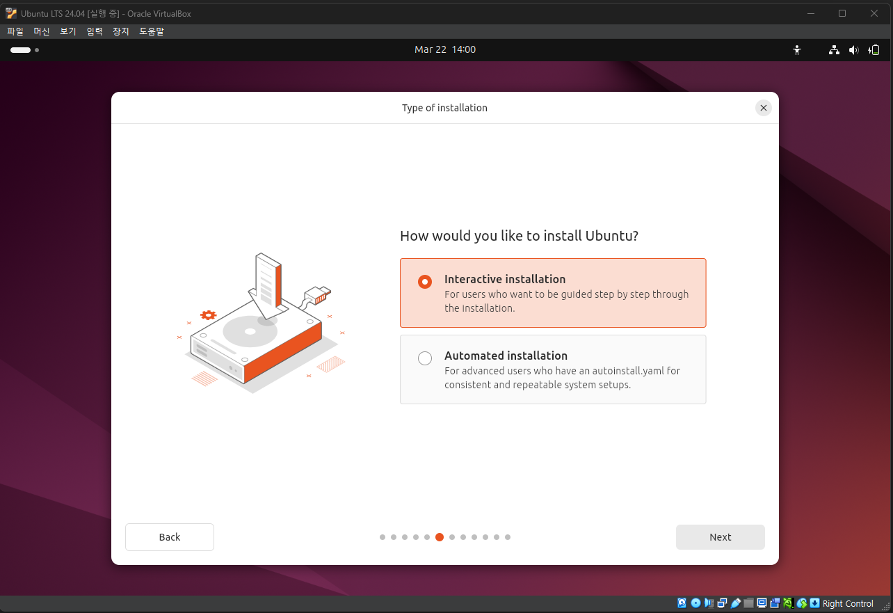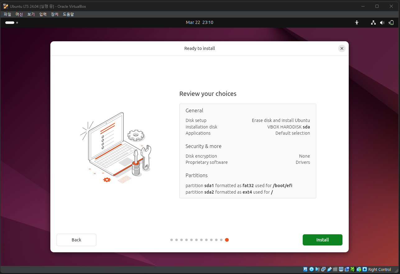 우분투 설치 파일(ISO)의 다운로드가 끝났다면, 아까 만든 가상 머신에 우분투를 설치할 차례이다. VirtualBox로 돌아와 설치 과정을 이어서 진행하자.