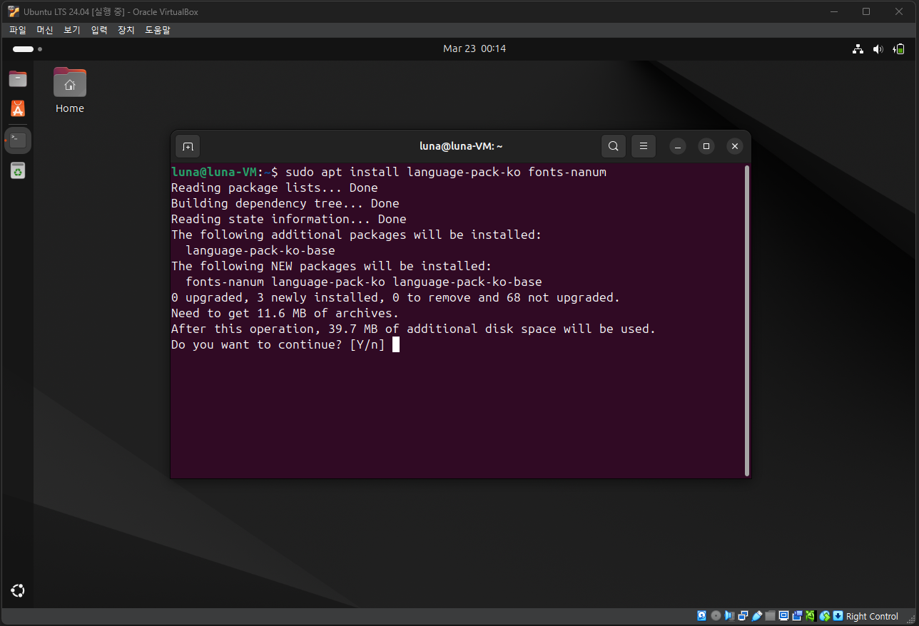 sudo apt install language-pack-ko fonts-nanum