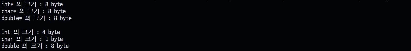 printf("double* 의 크기 : %d byte\n", sizeof(double*));