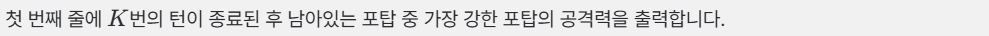 - 모든 턴이 종료된 후, 남은 포탑들 중 최대값을 찾아 출력