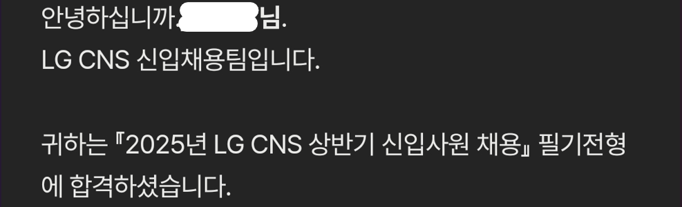 그래도 기쁜 일들이 많이 생겼다. 이번 상반기 공채에 딱 2개의 지원서만 제출했는데 모두 서류 합격했다는 소식을 들었다. 무려 삼성전자 DX 부문과 LG CNS였는데 말이다. (덕분에 코테 준비하느라 더욱 바빠졌지만 행복했다.)