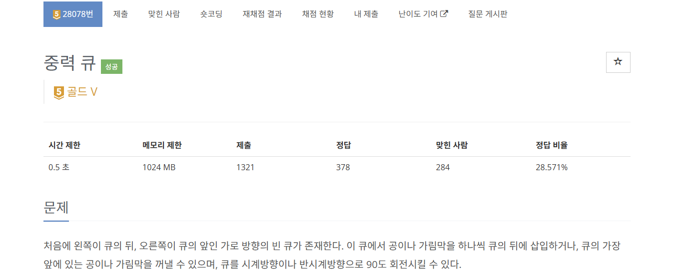 [APS][C++] BOJ G5 28078번 중력 큐📖 APS/BOJ2025. 5. 6. 15:51
