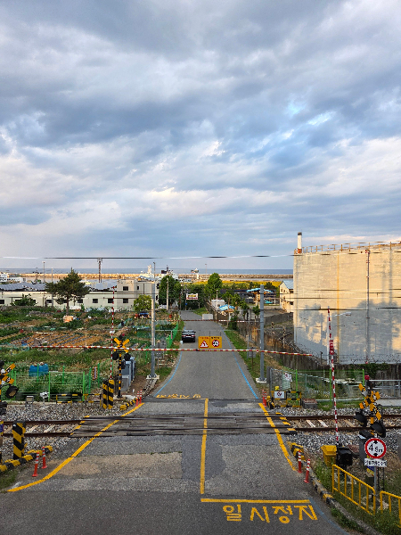 골목 골목 구경하고 싶어서 일부로 철도 옆길 따라서 하평해변 쪽으로 내려갔는데, 아주 맘에 드는 풍경이었다. 뭐랄까.. 사람 냄새나는 풍경이랄까..? 개인적으로 좋아하는 풍경이라 매우 만족스러웠다. 막상 해변에 도착하고 나니 작은 해변이라 해변으로 안내려가고 하평공원으로 이동해서 위에서 멀리 내려다보며 하평대라는 정자에 앉아서 잠시 쉬었다.