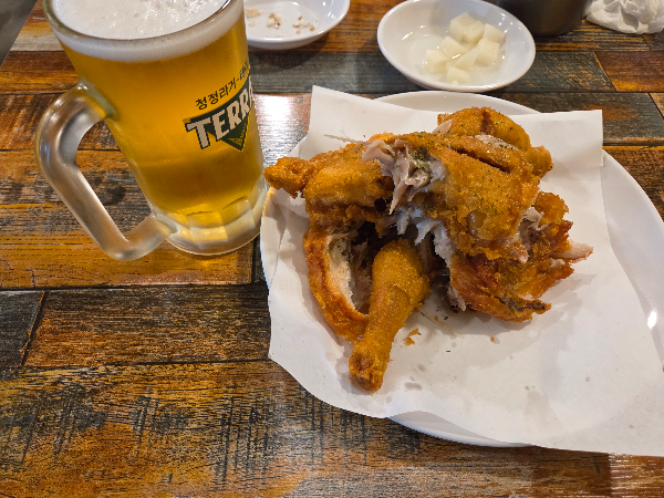 오늘 하루지만, 지나다니면서 맛있는 냄새가 난다고 생각했는데, 정말 맛있었다. 정신차리고보니 옛날 치킨 한마리와 맥주 500cc 3잔을 마셔버렸다...ㅎㅎ 회 대신에 찾은 곳이었지만, 매우 만족하는 식사가 되어버렸다.
