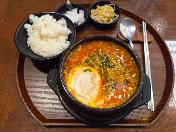 그렇게 묵호에 도착해서 처음 먹은 식사는 초당쫄면순두부였다. 대략 20분 정도 대기하다 들어갔다. 대합실도 있어서 기다리는 건 힘들지 않았다. 순두부찌개처럼 보이지만 먹어보니 순두부찌개보다는 짜글이 같은 느낌에 가까웠고, 보이진 않지만 이름에서도 알 수 있듯 쫄면이 들어 있어서 국물이 금방 사라져서 더 그렇게 느껴진 것 같다. 여튼 순두부를 좋아하는 나에게는 최고의 선택이었다.