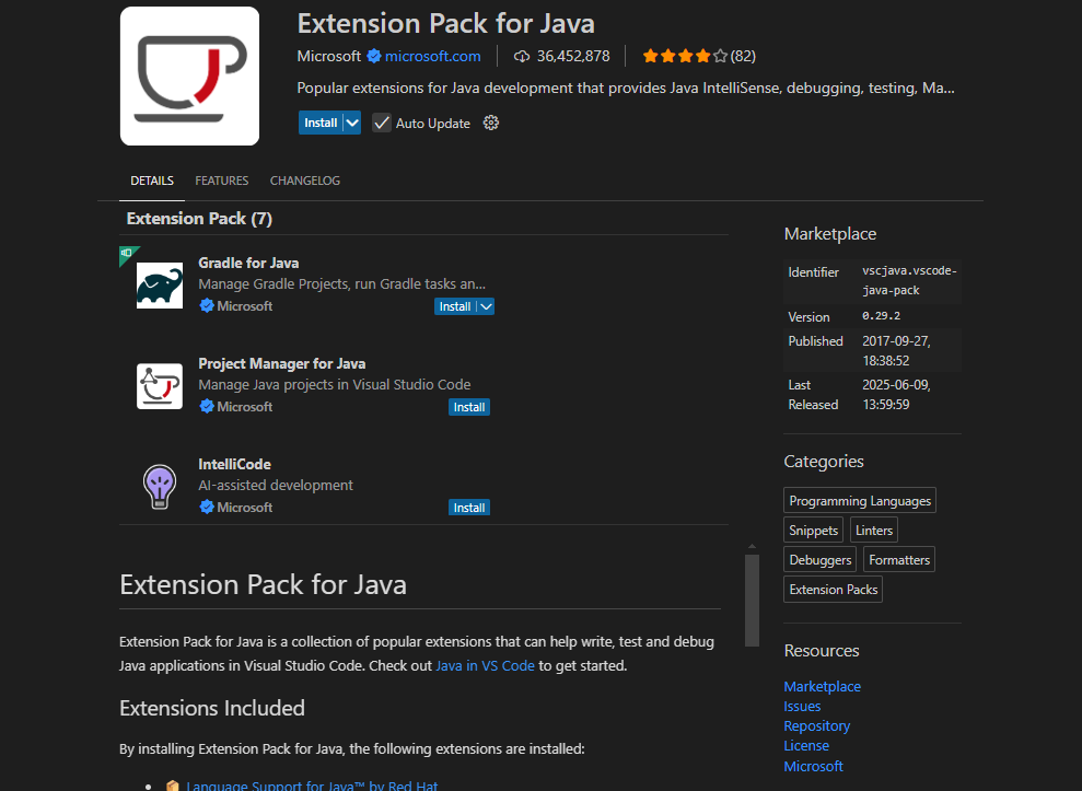 Extension for Visual Studio Code - Popular extensions for Java development that provides Java IntelliSense, debugging, testing, Maven/Gradle support, project management and more