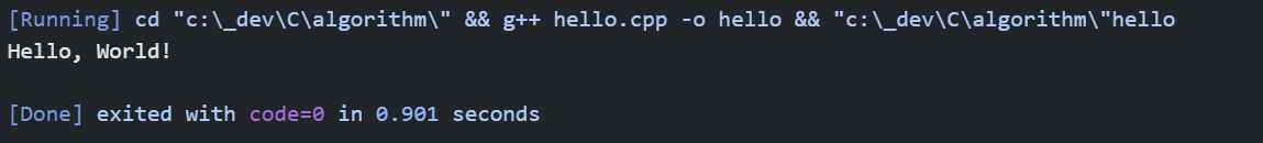 ) 혹은 외부 터미널에서 아래 명령어를 실행한 후 Hello World!