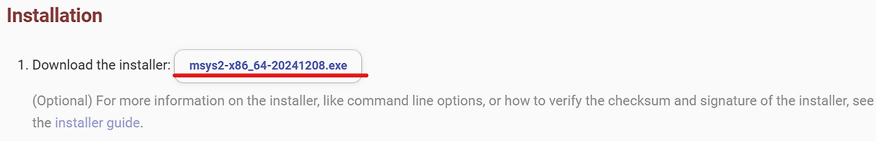 OS 종류에 따라 다양한 버전이 존재하지만, 본 글에서는 VSCode에서 공식적으로 설명하고 있는 MSYS2를 설치할 것이다. 아래 링크를 통해 이동해서 MSYS2 설치파일을 다운 받아준다.