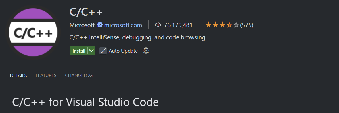 Extension for Visual Studio Code - C/C++ IntelliSense, debugging, and code browsing.
