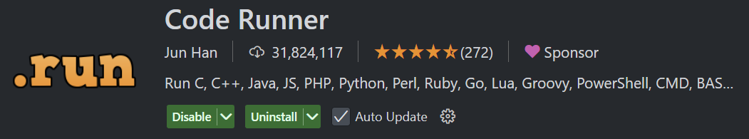 Extension for Visual Studio Code - Run C, C++, Java, JS, PHP, Python, Perl, Ruby, Go, Lua, Groovy, PowerShell, CMD, BASH, F#, C#, VBScript, TypeScript, CoffeeScript, Scala, Swift, Julia, Crystal, OCaml, R, AppleScript, Elixir, VB.NET, Clojure, Haxe, Obj-C,