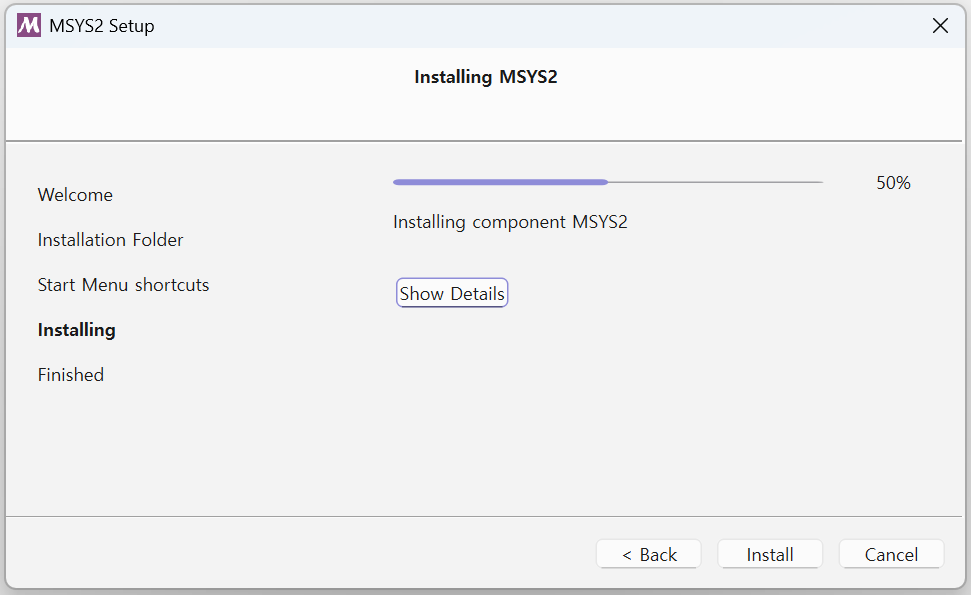 만약 체크를 해제하고 설치를 종료하여 터미널이 실행되지 않는다면, 설치된 프로그램들 중에서 MSYS2 UCRT64를 실행하면 된다.