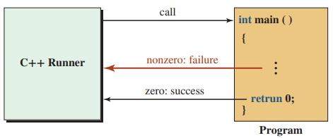 main()함수가 리턴(응답)하는 값으로 판단한다. ➡️ 0을 리턴하면 정상 종료, 0이 아닌 값을 리턴하면 프로그램 동작 실패