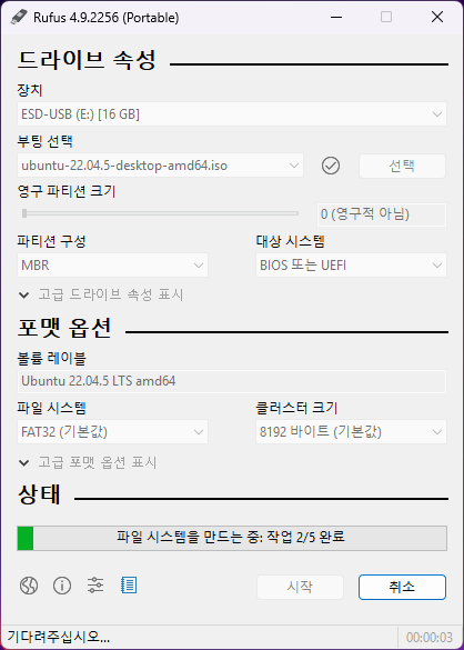 Linux Ubuntu 22.04 설치용 부팅 디스크 만들기 끝!