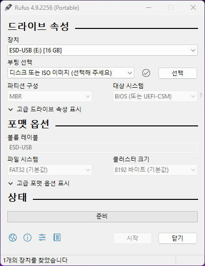 Rufus - 간편한 방법으로 부팅 가능한 USB 드라이브 만들기